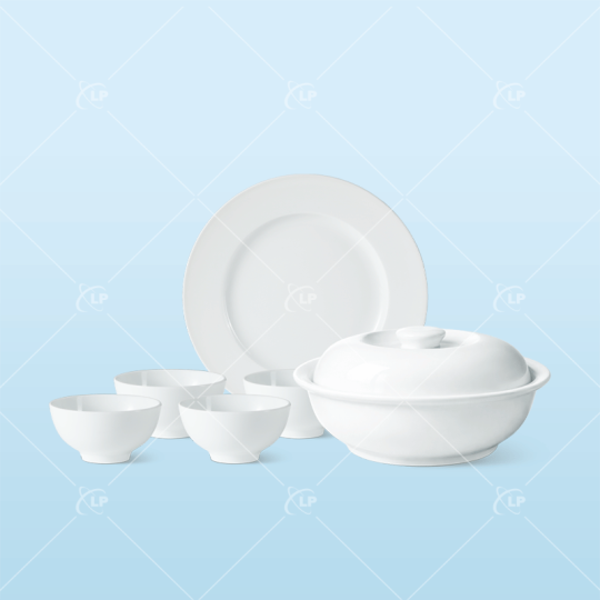 Bộ bát đĩa 6 món trắng (kèm âu cơm) - LPBD59