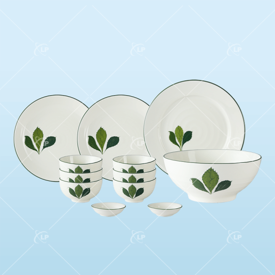 Set bàn ăn 12 món họa tiết 3 lá - LPBD50